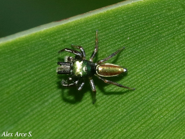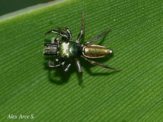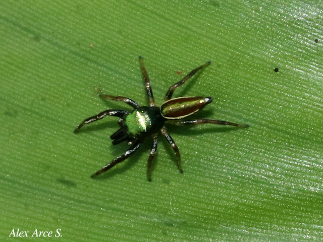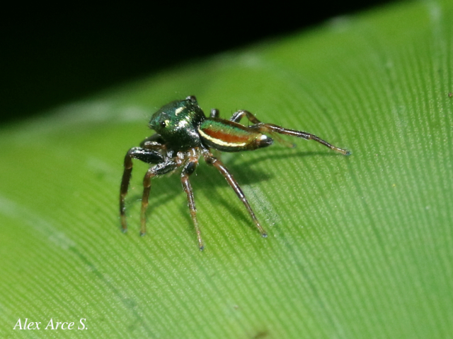 Es una especie de araña de la familia de las arañas saltadoras, y es la única araña principalmente herbívora conocida. Es una especie que se alimenta de las hojas y el néctar de las acacias silvestres donde cohabitan con las hormigas, es de color rojizo y del tamaño de una uña.