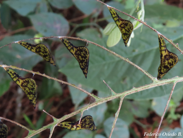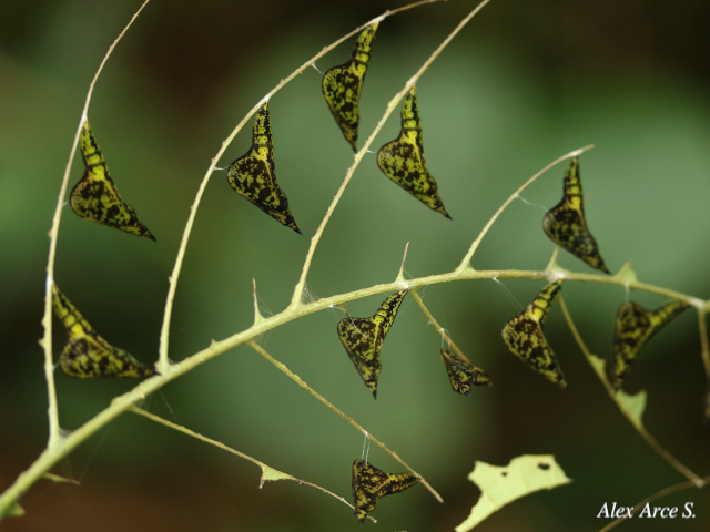 Durante una gira de campo a Cascadas del Toro se observaron numerosas pupas de esta especie sobre una plántula de candelillo (Senna papillosa).