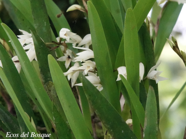 Esta especie se distribuye en toda Mesoamérica. En Costa Rica se encuentra en bosque muy húmedo y pluvial, 0–1500 m; vertiente Caribe todas las cordilleras principales. Plantas pequeñas con pseudobulbos. Hojas lanceoladas. Flores blancas, ovario usualmente oscuro-escamoso. Las flores están presentes en enero, marzo, de junio a agosto, octubre y diciembre. (1)
