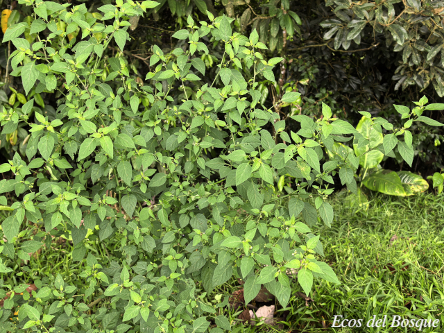Hierbas, a veces arbustivas. Se distribuye desde Estados Unidos hasta Argentina y Chile, e introducida en trópicos y subtrópicos del Viejo Mundo. En Costa Rica se localiza en bosque seco, húmedo, muy húmedo, pluvial y nuboso, bordes y claros de bosques, potreros, lotes baldíos y orillas de quebradas, ríos y caminos, en elevaciones entre 0 y 1850 m; es posiblemente la especie de solanum más diseminada en el país. (1)