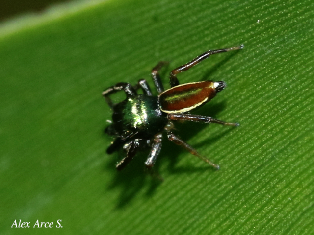 Es una especie de araña de la familia de las arañas saltadoras, y es la única araña principalmente herbívora conocida. Es una especie que se alimenta de las hojas y el néctar de las acacias silvestres donde cohabitan con las hormigas, es de color rojizo y del tamaño de una uña.