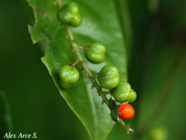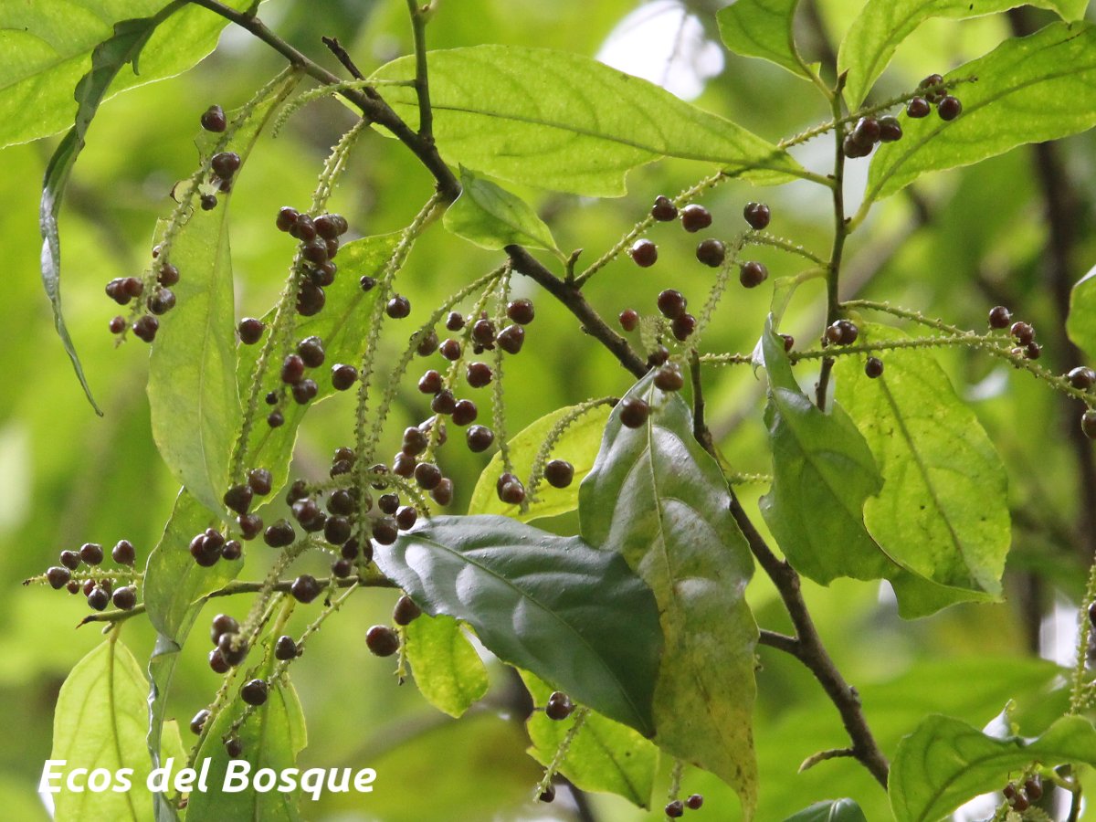 Arbusto o árbol, 1.5–10(–15) m. Hojas elípticas a elíptico-oblongas u oblanceoladas, subenteras a crenadas o aserradas. Inflorescencias 1(–3) por axila. Frutos verdes a rojos o morados; semillas con la sarcotesta anaranjada (1).